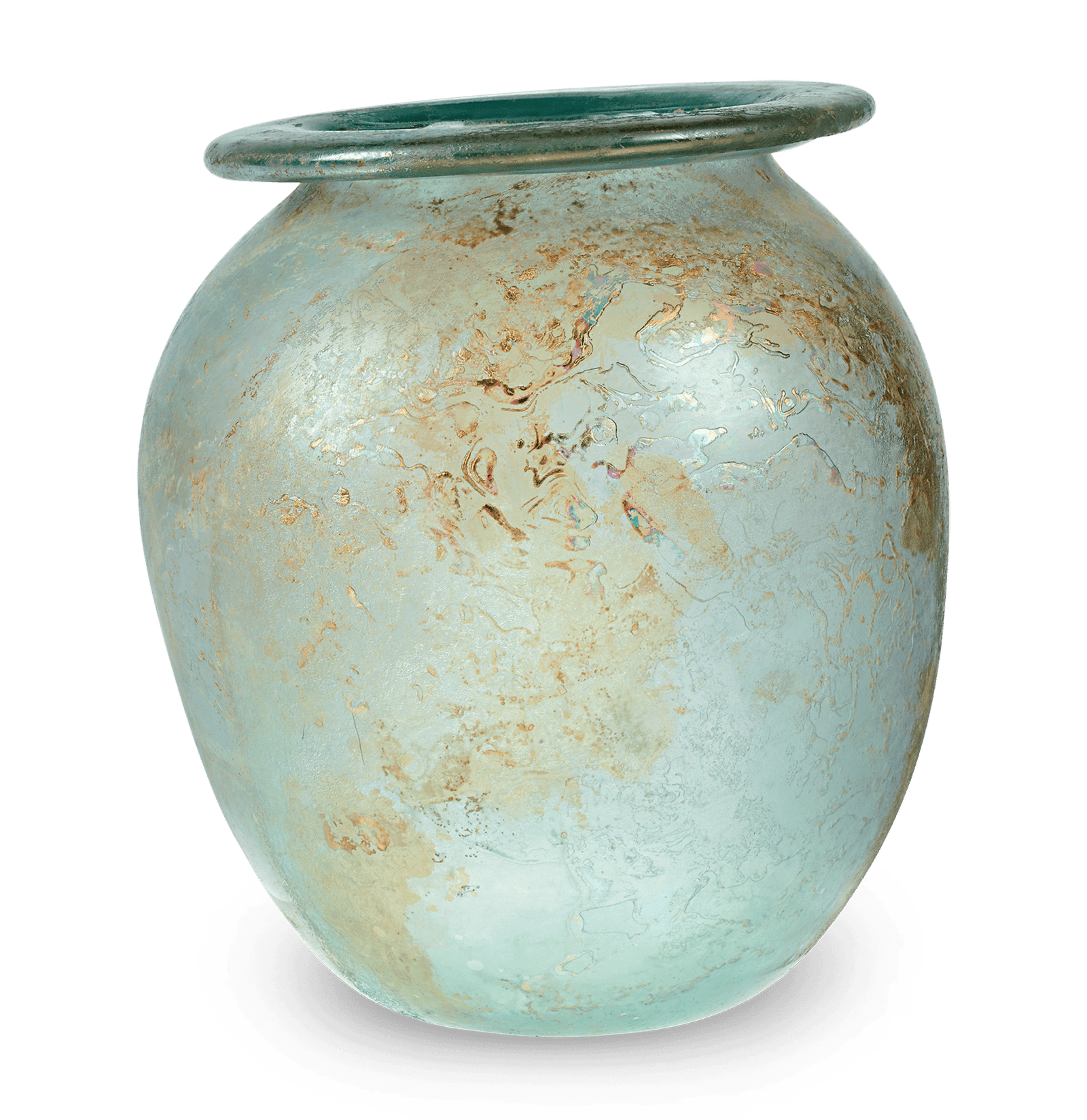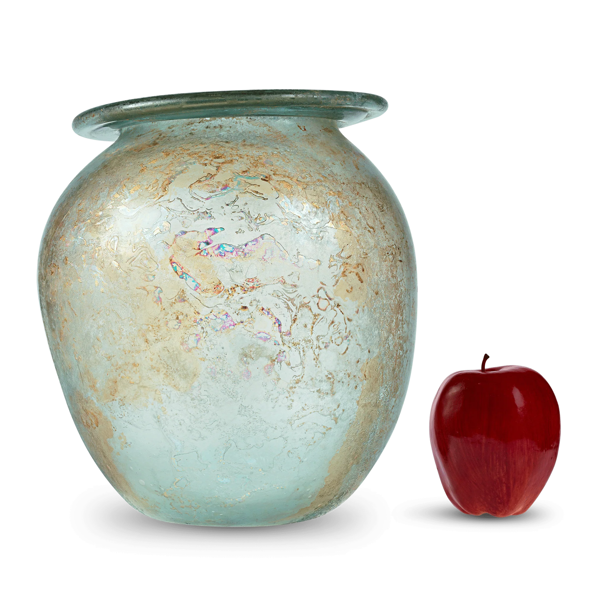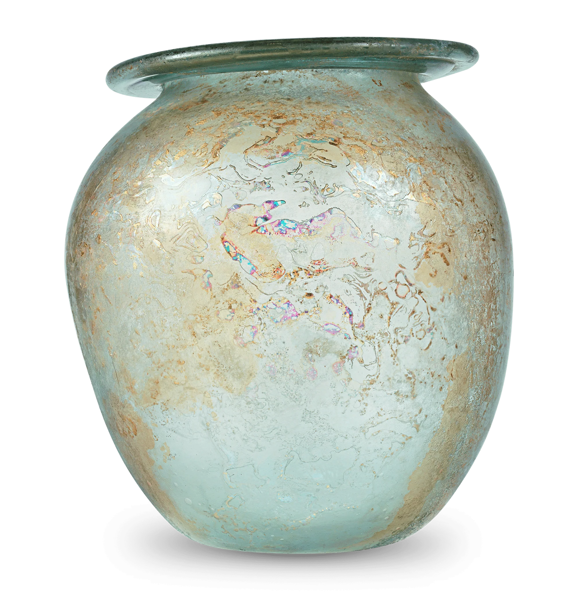 These vessels were created sometimes as storage jugs or, more commonly, as funerary urns that would contain the ashes of the deceased. In the early Roman Imperial period (1st-4th century), cremation was the preferred method of burial, and glass was the primary material used for these cinerary vessels. The shapes and styles of the vessels varied, with some featuring matching lids and handles. Some examples that were excavated from tombs in Italy, Gaul and Britain were found protected within stone or lead containers, which helps explain their remarkable preservation.