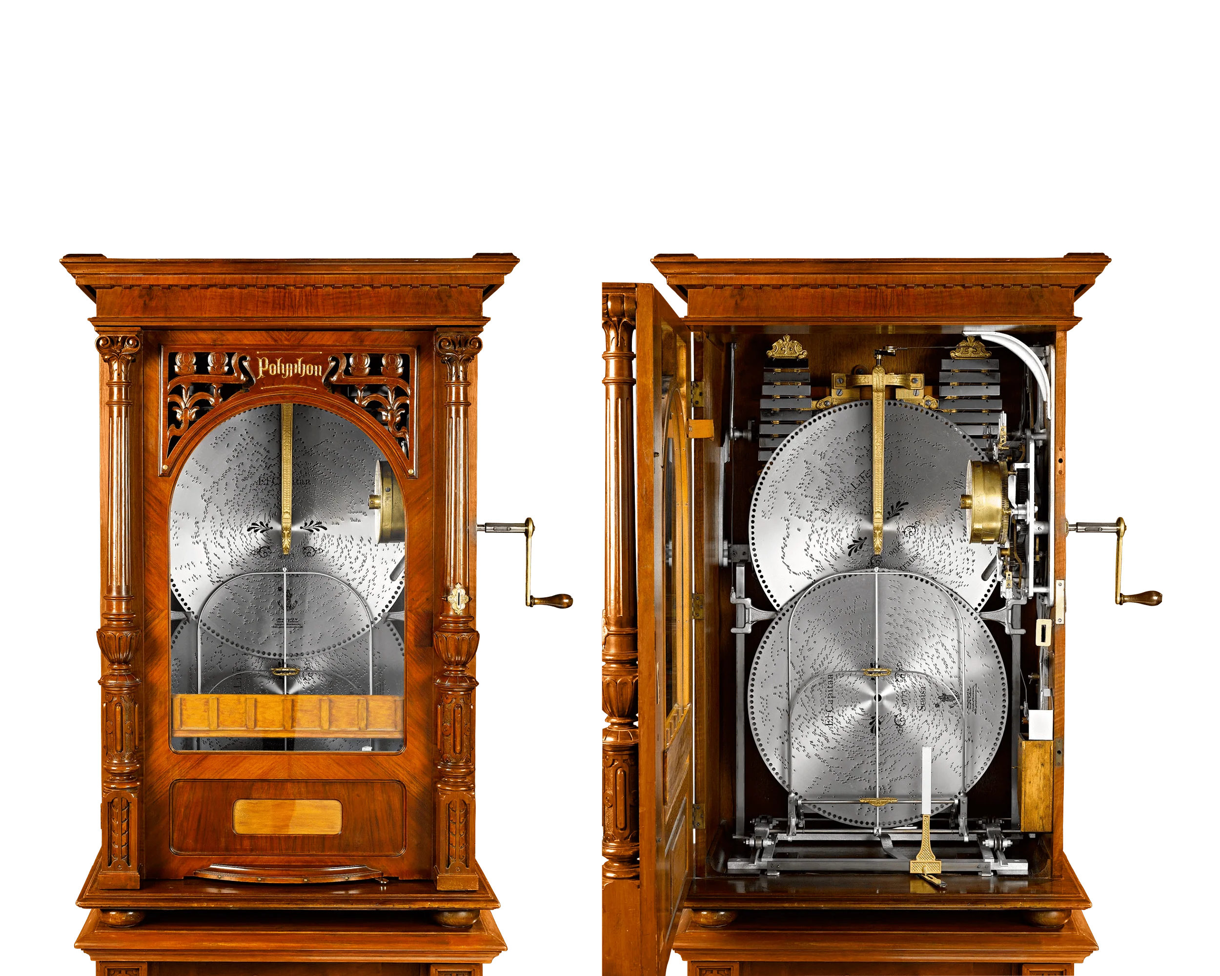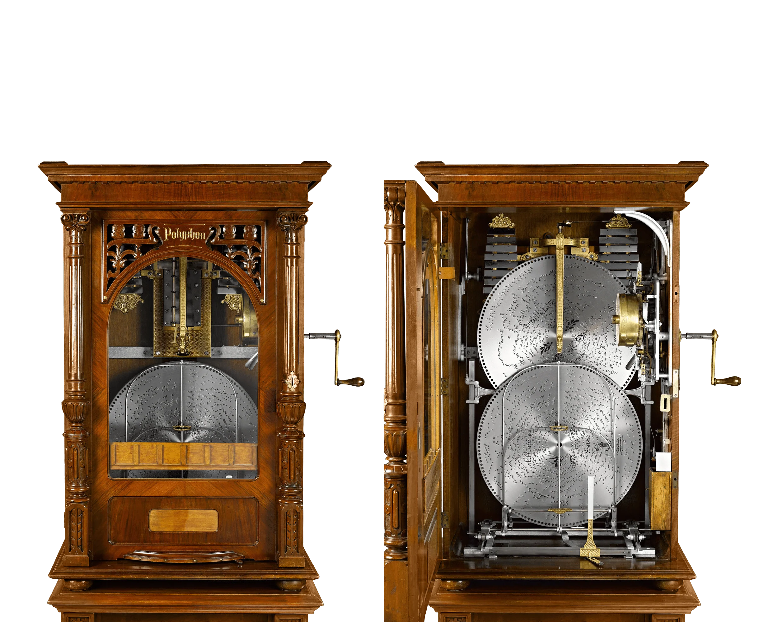 • This rare Polyphon autochange disk player allows for the selection of six disks at a time