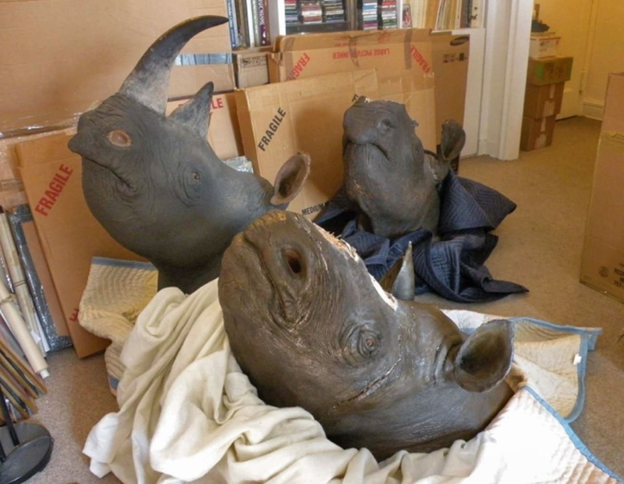 Weighing around 3000 pounds, the name “white rhino” is actually a misnomer, an incorrect translation of a word that actually means “wide”. There are only 5 species of rhinoceros left in the world and all are highly endangered. They range in Africa, Sumatra, India and Java. The white rhino is from Africa. Rhinos are an ancient species dating back some 50 million years ago. 2-part skull (separate cranium & jaw).